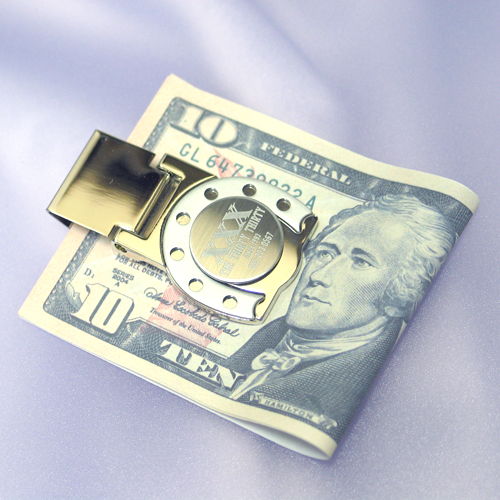 さりげないお洒落を演出するマネークリップ。オリジナルデザインのコインを装着。